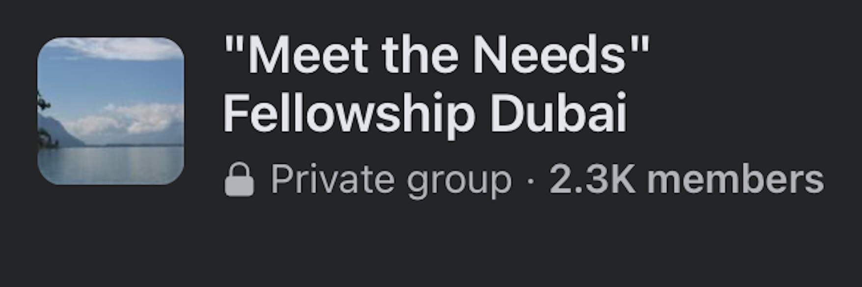 A Facebook group created specifically for current Fellowship Dubai attendees to post appropriate needs and respond with appropriate support.